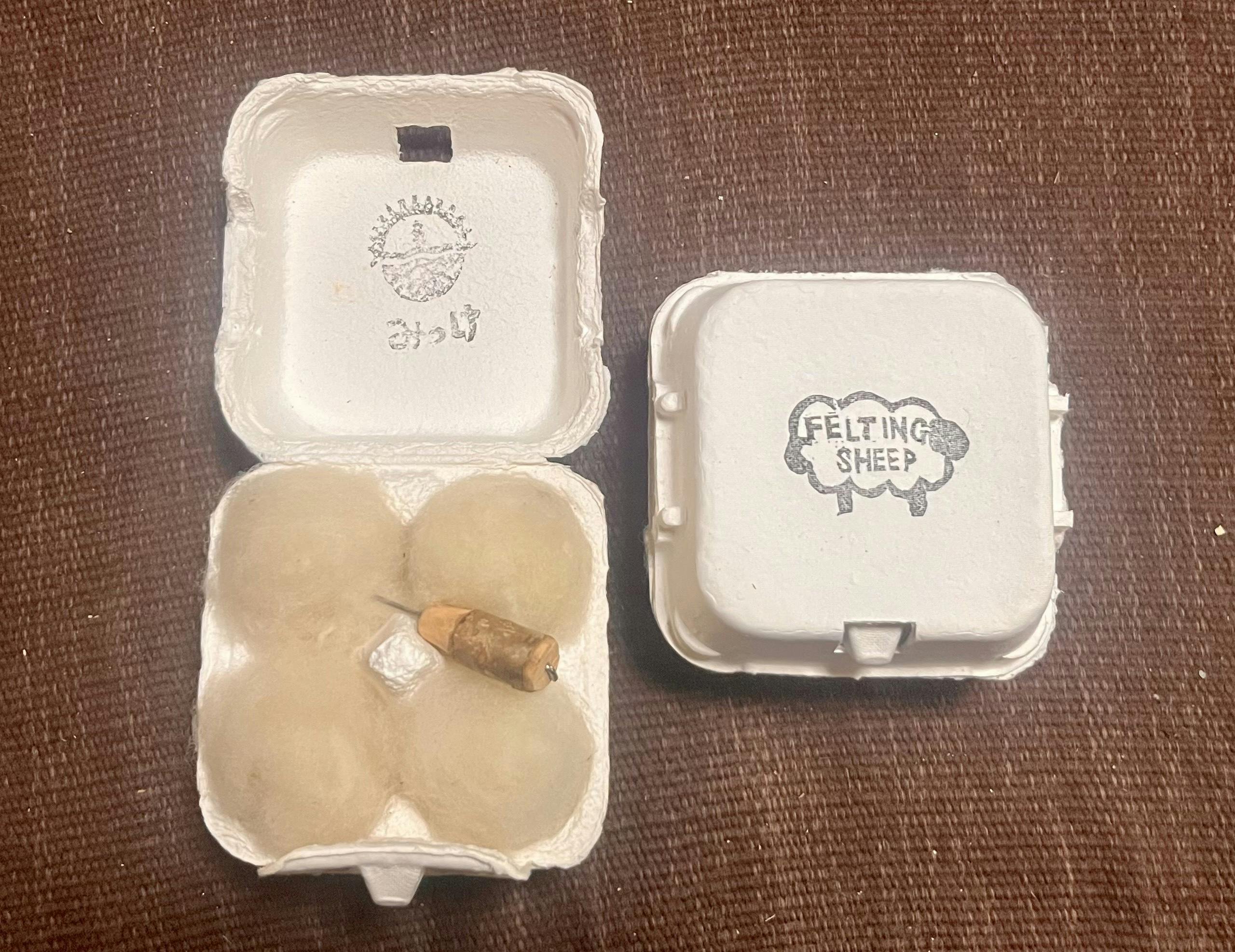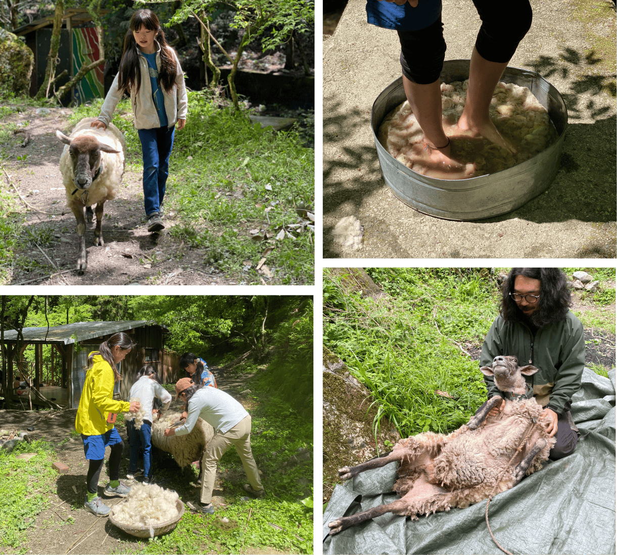 春にみんなで毛刈りをし、川の水で歌いながら楽しく洗い、小さなゴミを取り除いて、パッケージしました。フェルトを刺すためのニードルも、みっけで拾った枝を使って手作りしています。