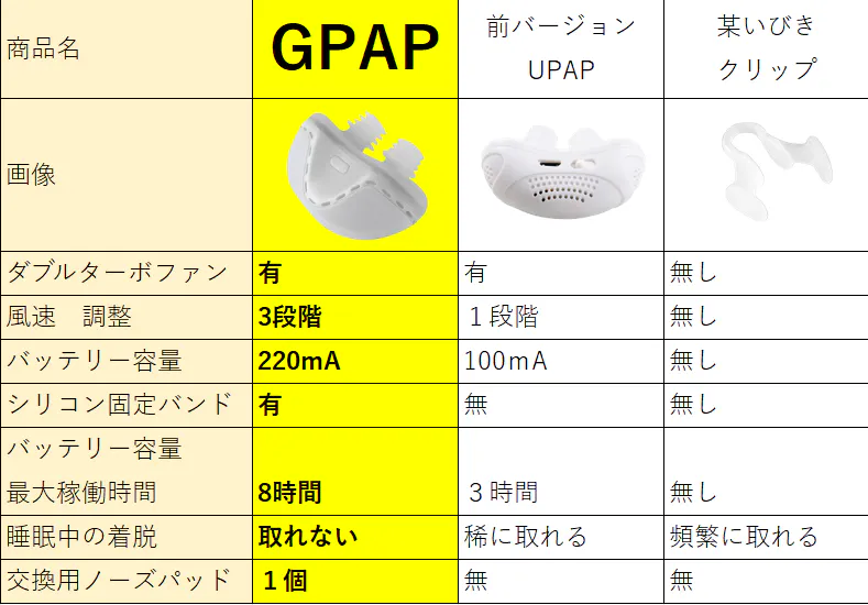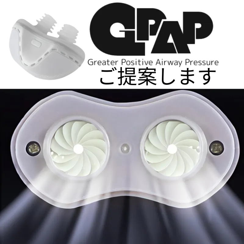 A:本製品「GPAP」は医療機器ではなく、CPAPとは異なる一般家庭向けのサポートアイテムです。