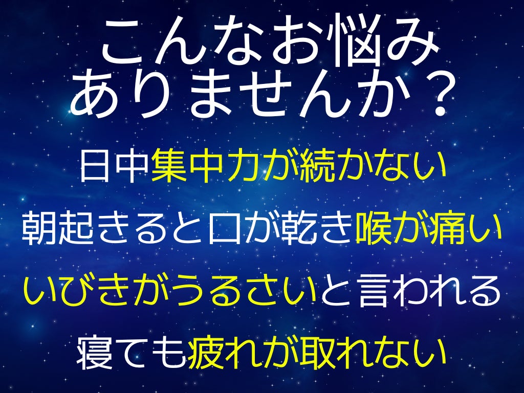 もしかすると、こうしたお悩みは睡眠中の呼吸の乱れが関係している可能性があるかもしれません。
