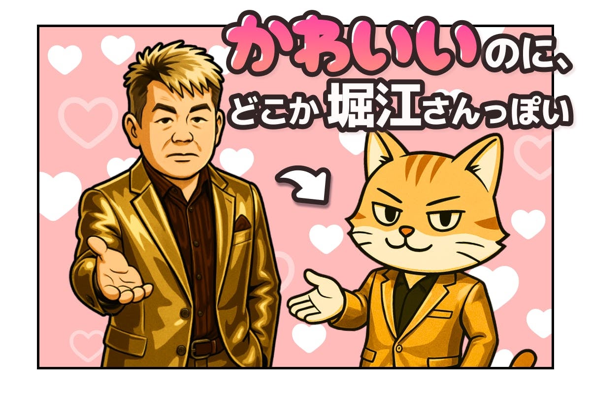 「ホリエモンが猫になった」という意外性と、愛されるデザインが融合したキャラクターとして、