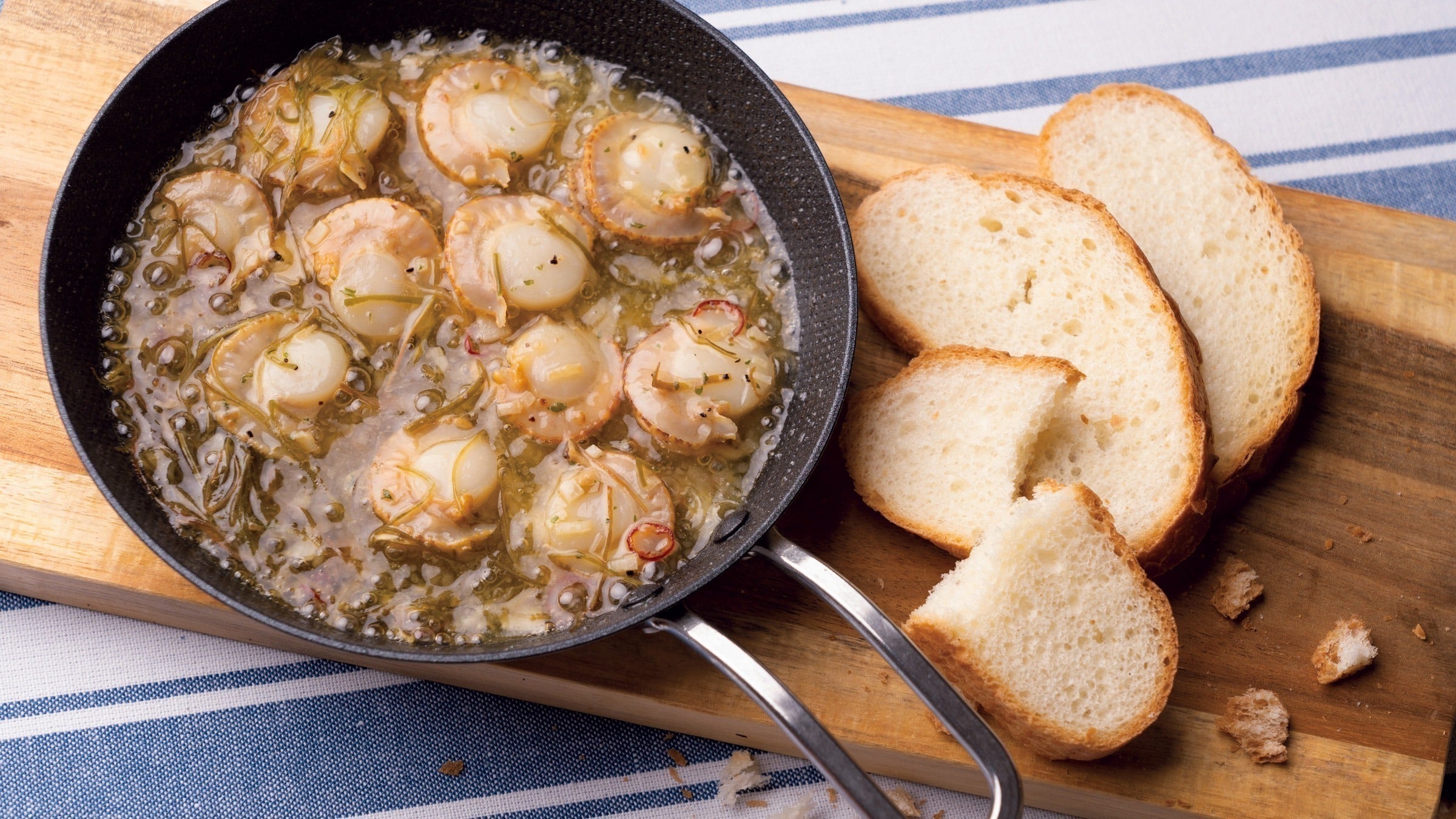 トマトベースにピリッと辛さを効かせたアラビアータ仕立て。コリコリ食感のつぶ貝との相性が絶妙で、赤ワインとのペアリングにもぴったり。
