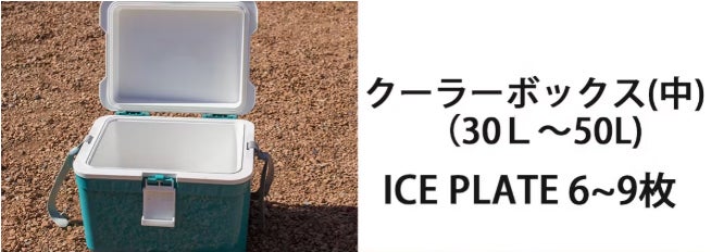 その後、中型のクーラーボックス(30L〜50L)にICE PLATEを6〜9枚入れて使用したところ、さらに大人数でのキャンプでも十分な冷却効果を発揮してくれました。冷たい飲み物を長時間保つことができ、ICE PLATEの冷却効果が持続するので、氷が溶けて水が漏れる心配がなく、安心して使えました。