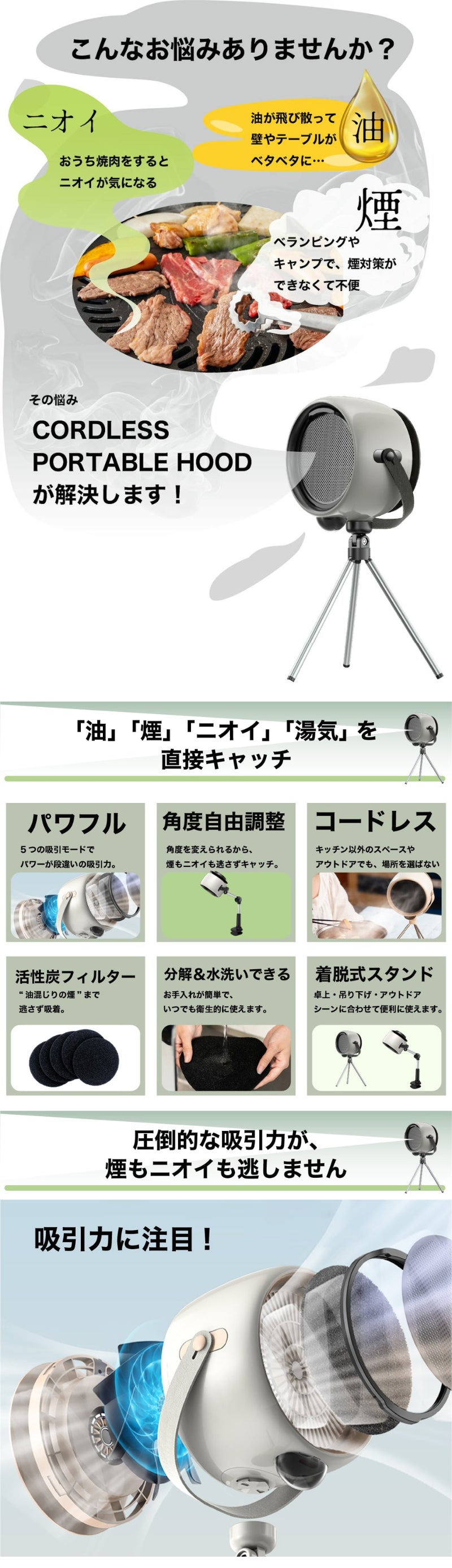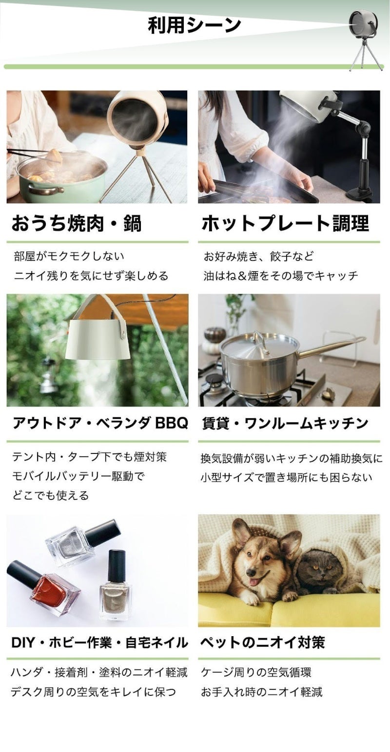 煙・油・ニオイを瞬時に吸収する場所を選ばないワイヤレス換気扇