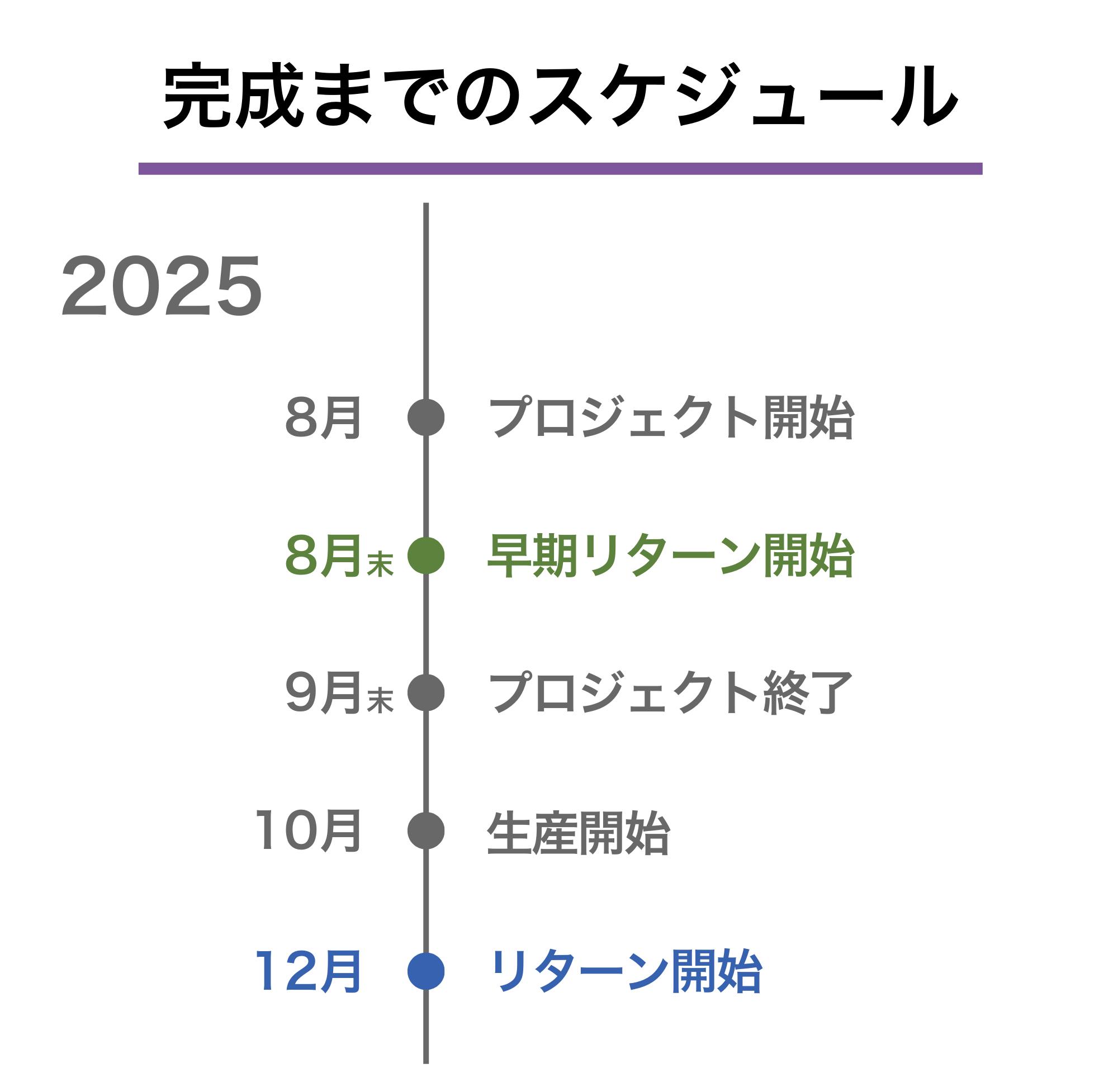 ※本文中に記載させていただいたスケジュールは、あくまでプロジェクト公開時点の予定です。クラウドファンディングを経て輸入を行う性質上、配送遅延のおそれがございます。