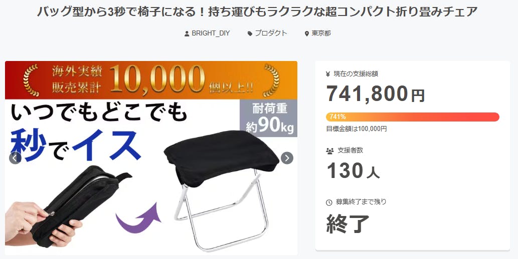2025/10/02 00:49ご支援者様、バッグ型から3秒で椅子になる!持ち運びもラクラクな超コンパクト折り畳みチェアにご興味をお持ちいただきありがとうございます。プロジェクト開始から51日目で130人ものご支援者の方々より支援頂き、無事プロジェクト終了を迎えることが出来ました。早速皆様のリターンを2025年12月末にお届けできるよう準備を始めております!皆様にご満足いただけるリターンをお届けできるよう、全力で取り組んで参りますので引き続き、「バッグ型から3秒で椅子になる!持ち運びもラクラクな超コンパクト折り畳みチェア」をよろしくお願い致します。BRIGHTチーム もっと見る