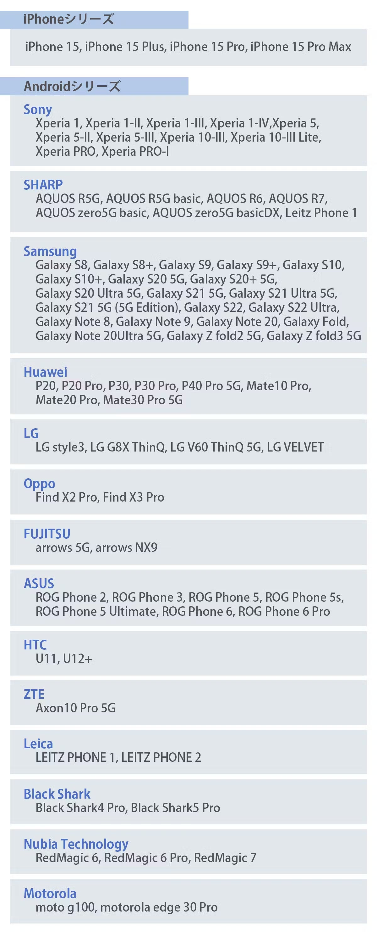 ※リストに記載されている対応機種は一部です。お使いのデバイスがType-Cポートを搭載し、映像出力機能に対応していることが必要です。これにより、デバイスから映像を出力することが可能になります。お使いの機種がリストに載っていない場合は直接購入元に対応の可否を確認してください。
