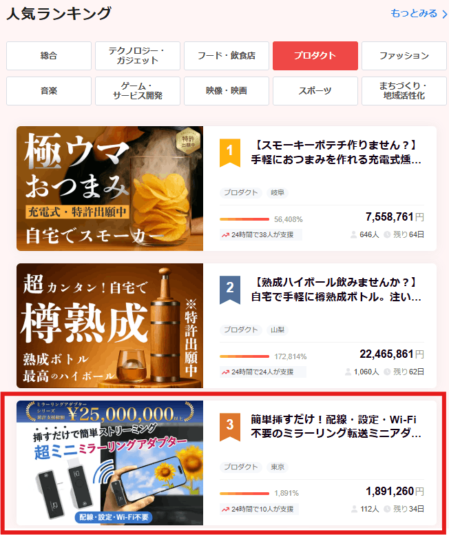 また本日のCampfireランキングのプロダクト部門 3 位 に入賞することが出来ました!