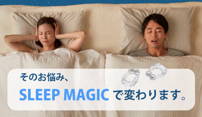 そこでおすすめしたいのが「SLEEP MAGIC」というデバイスです。SLEEP MAGICは鼻に装着するだけで、磁石の力を使って鼻腔を広げ、呼吸をスムーズにすることでいびきを効果的に軽減します。使い方はとても簡単で、毎晩寝る前に装着するだけ。これにより、深い眠りを促進し、睡眠中の呼吸を安定させることが可能です。