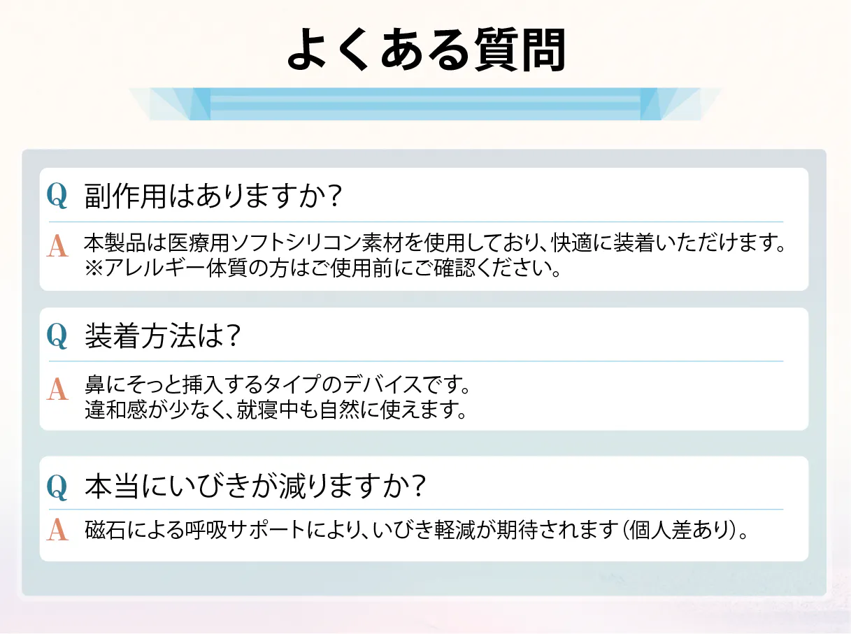 これにより、就寝中のいびきを和らげ、より快適な睡眠を目指せる構造になっています。