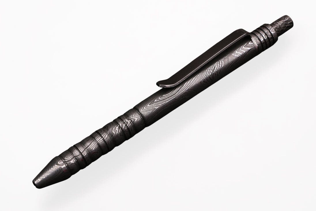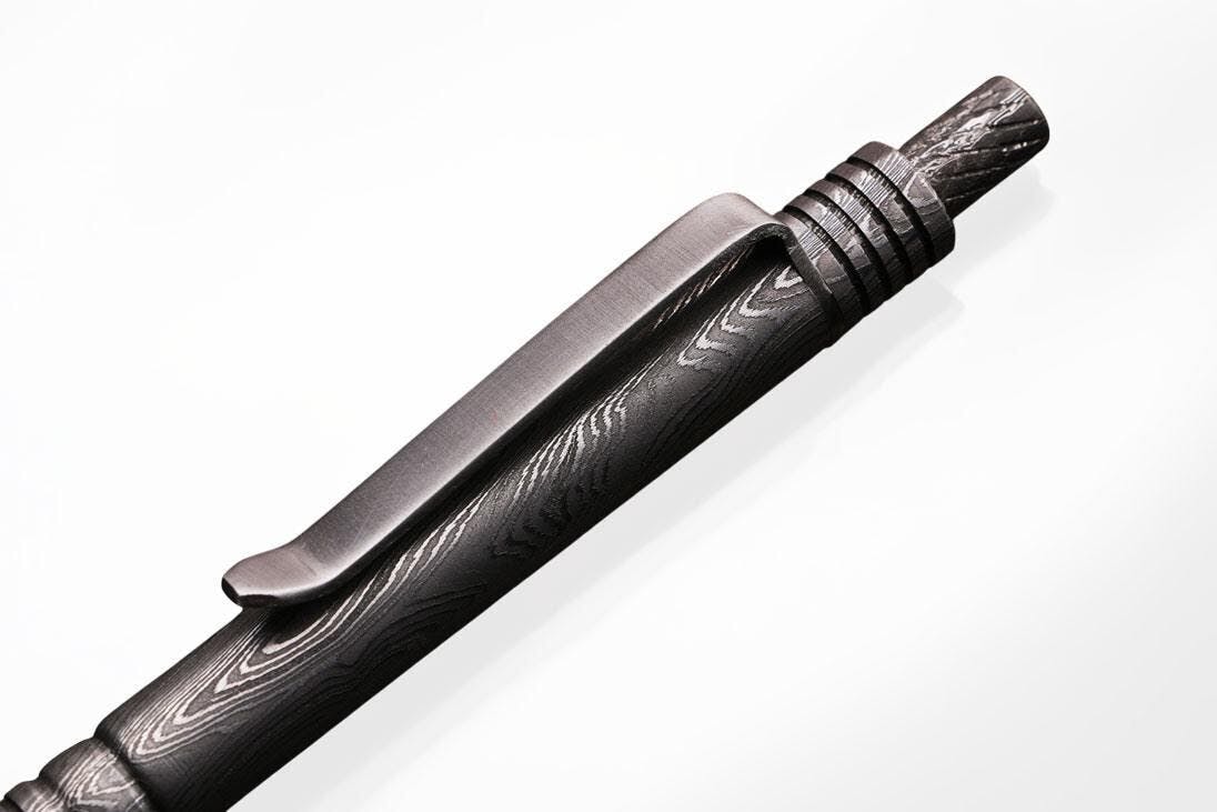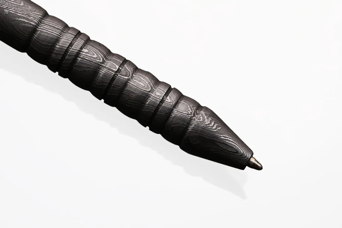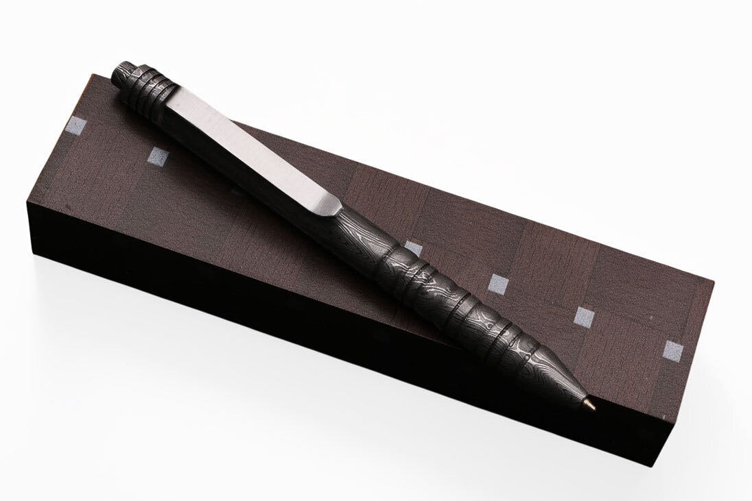 - ナイフに加工される高品質のダマスカス鉄鋼が、ボールペンになりました。