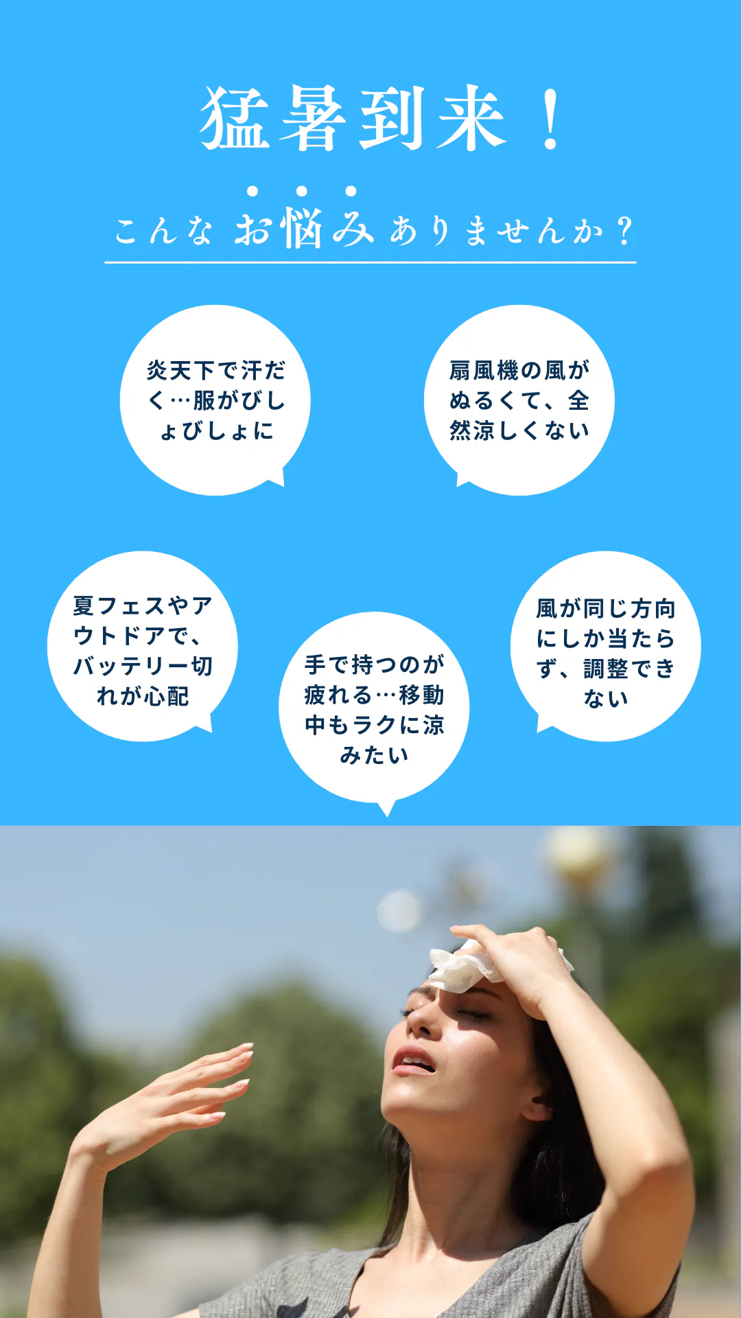 スマホ感覚で持ち歩けるから、通勤・通学・アウトドア・旅行 など、どんなシーンでも快適な涼しさを~
