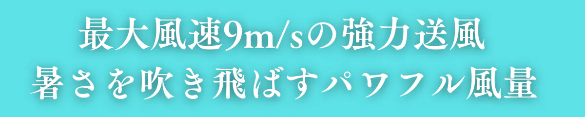 最大風速9m/sの強力送風で、どんなシーンでも快適な涼しさを提供します。