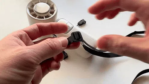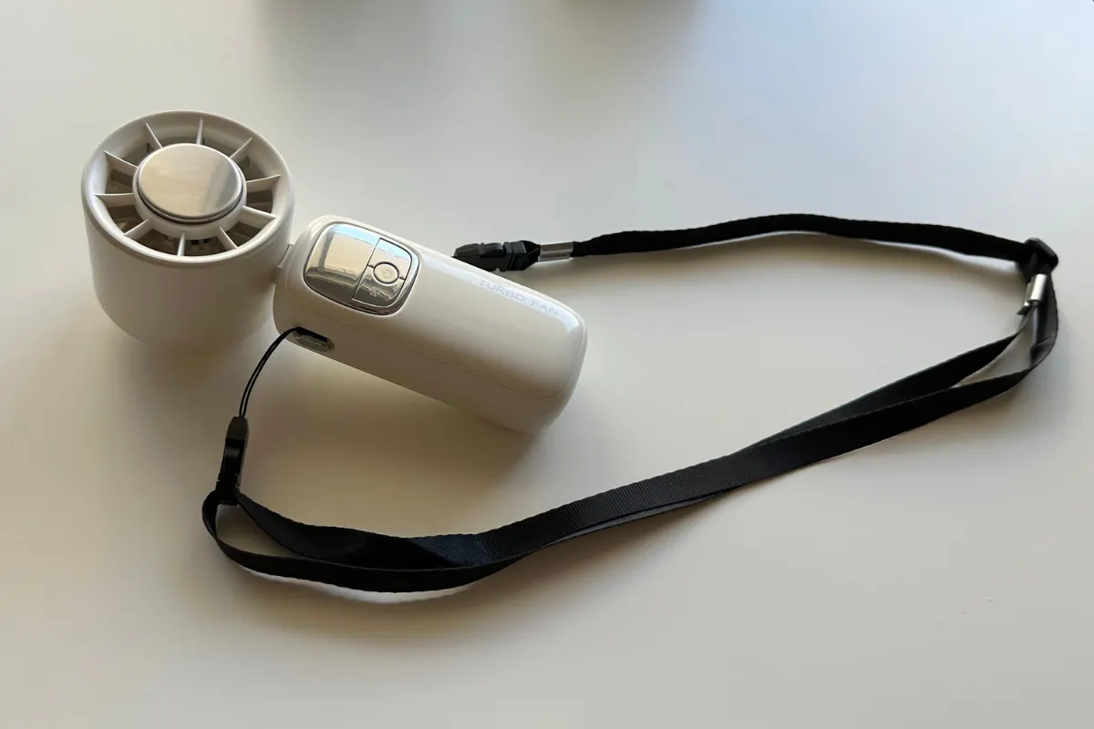 『TURBO FAN』は、取り外し可能&長さ調整可能なストラップを採用。使用シーンに応じて、首掛け・手持ち・卓上など自由に使い分けができます。