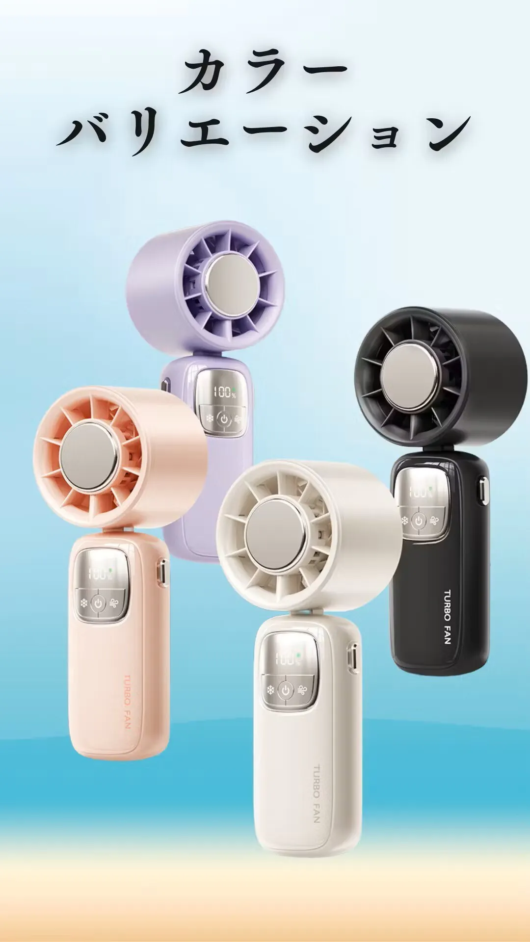 『TURBO FAN』は、ベージュ・パープル・ピンク・ブラックの4色展開。シンプルで洗練されたデザインが、どんなシーンにもマッチします。