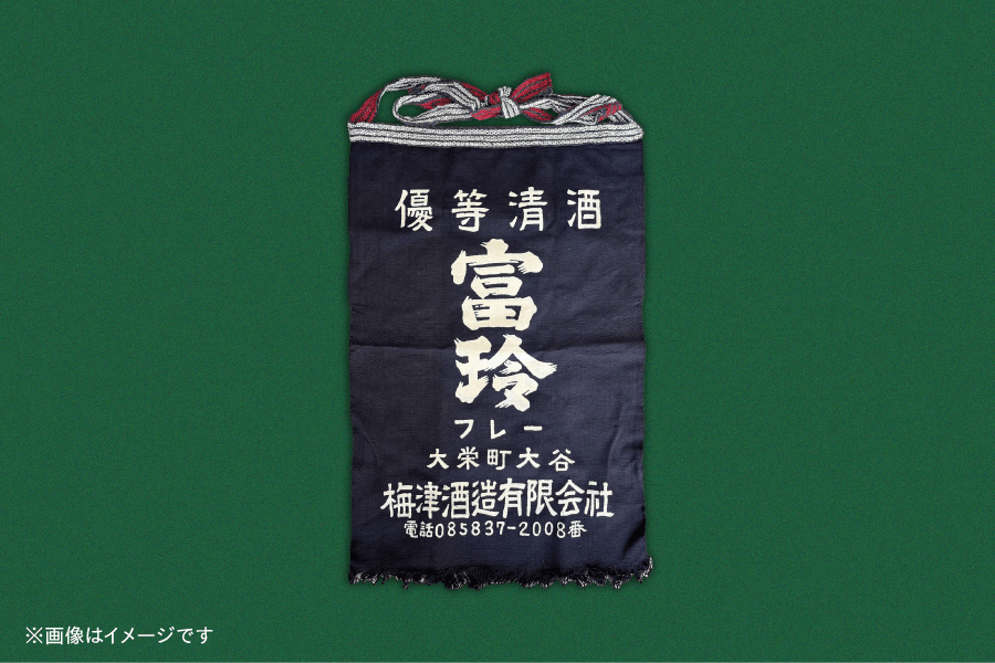 解体する蔵から発見された幻の前掛け。復刻ラベル『富玲』と同じく「点(、)」ありの富玲の前掛けは現存数わずかです。