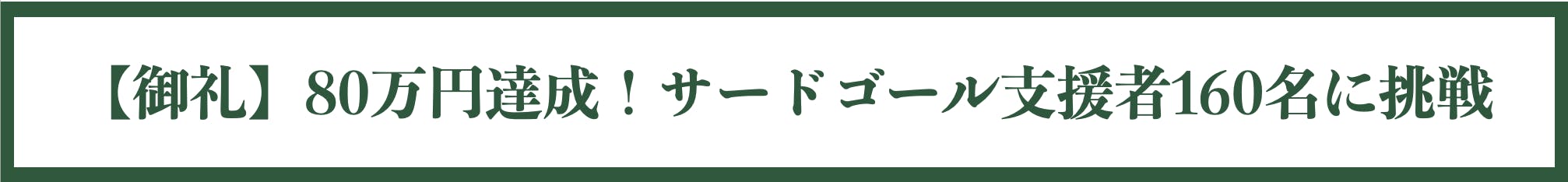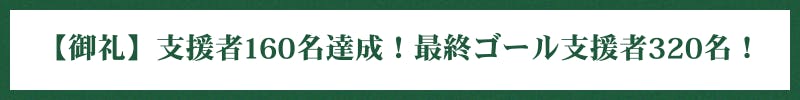 みなさんからの応援の声にお応えするためにも【 サードゴール 支援者160名 】を目指します!