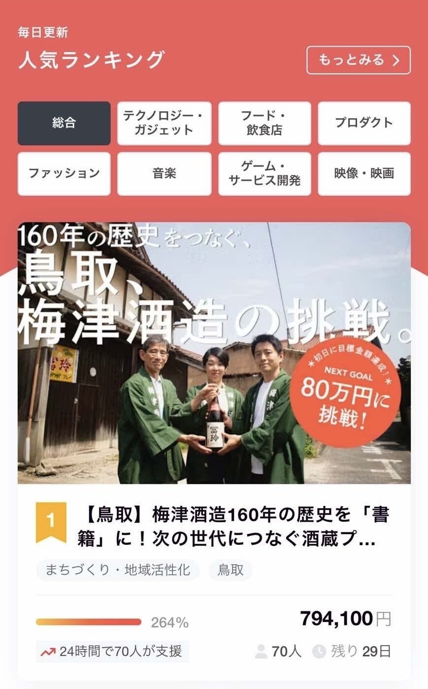\CAMPFIREの人気ランキングで1位になりました!/