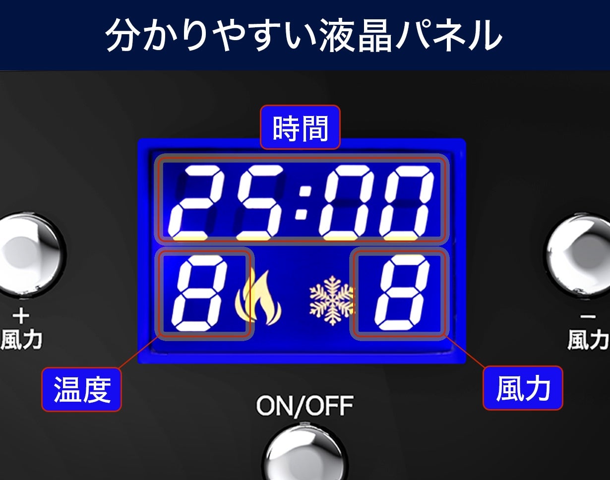 それぞれの操作は各種ボタンで簡単に行え、設定内容は液晶パネルでわかりやすく表示されます。