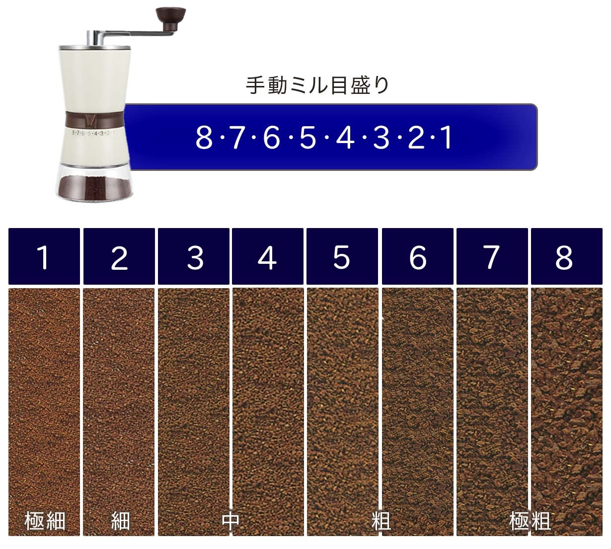 8段階まで挽くことができるので様々な粗さに挽いて飲み比べしても楽しいかと思います!