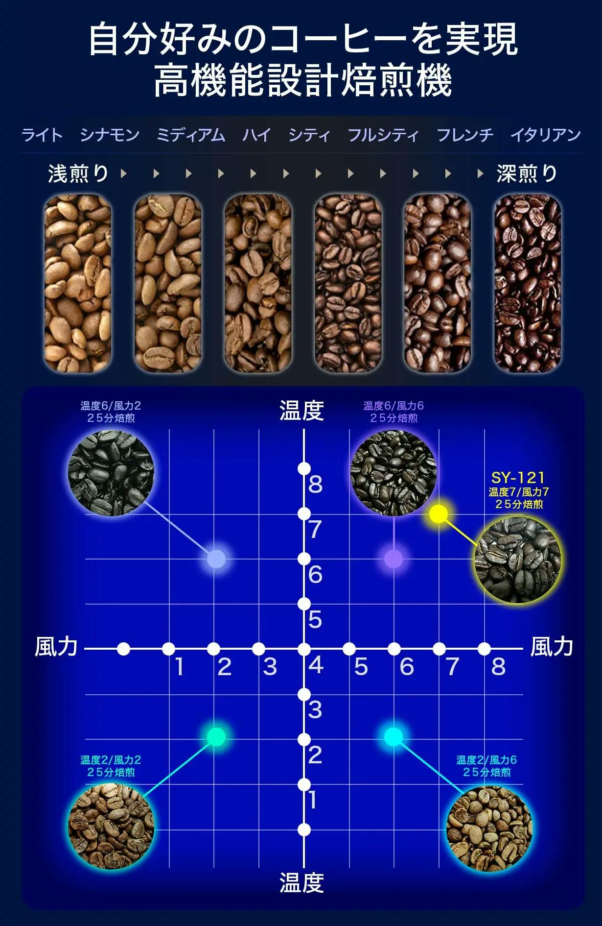 本商品は、焙煎時の温度と風力をそれぞれ1〜8段階で調整できます。