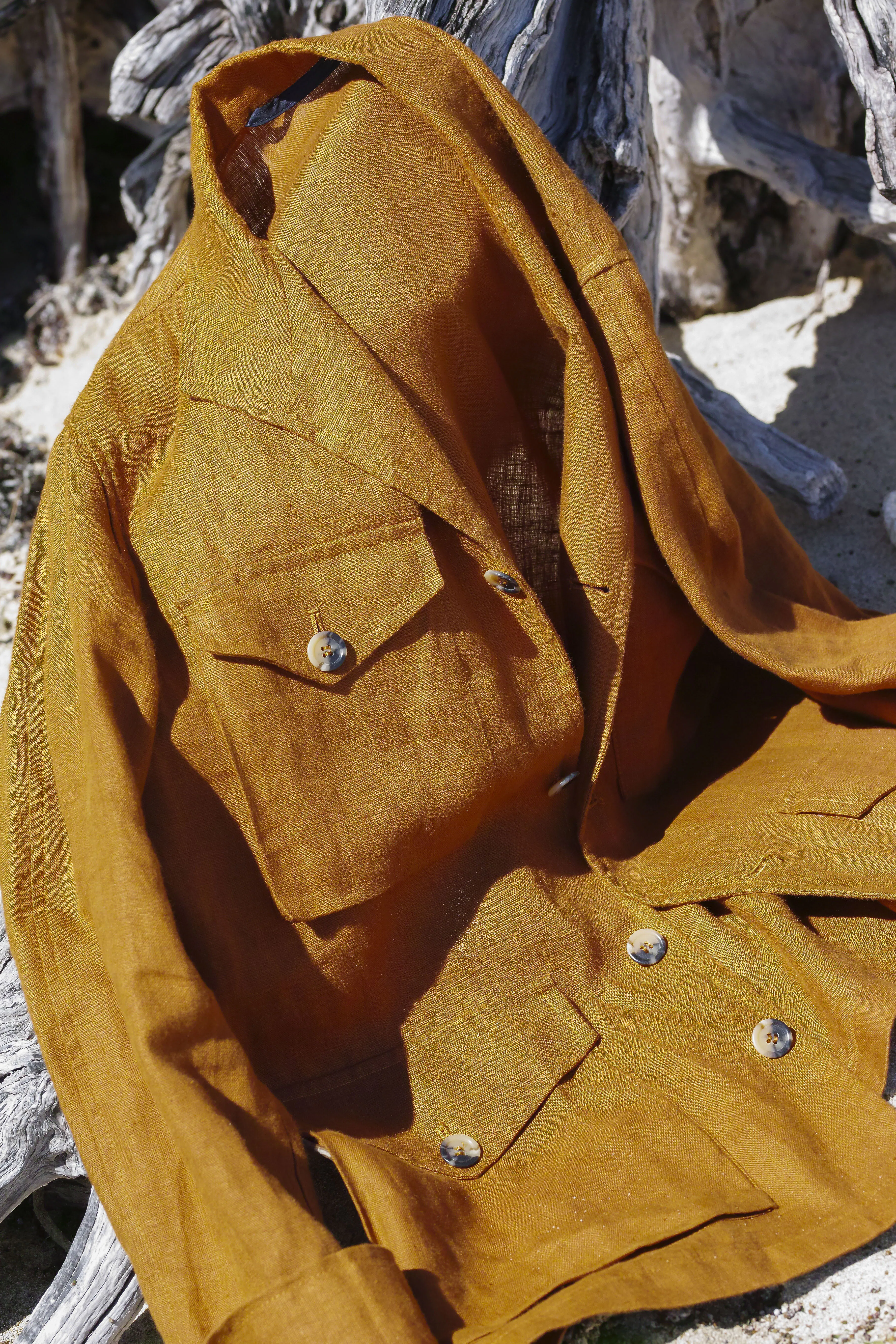 そしてこのジャケットには、スペインの“テバ”という物語も重なります。もともとは貴族であるテバ伯爵が狩猟用にイギリスのサヴィルロウで仕立てた、シャツとジャケットの間のような服。スペイン東部・サラゴサの老舗ブランド「フスト・ヒメノ」が今も手仕事で仕立て続け、王室にも愛されるその一着は、“自由でいて、品がある”という思いを体現しています。