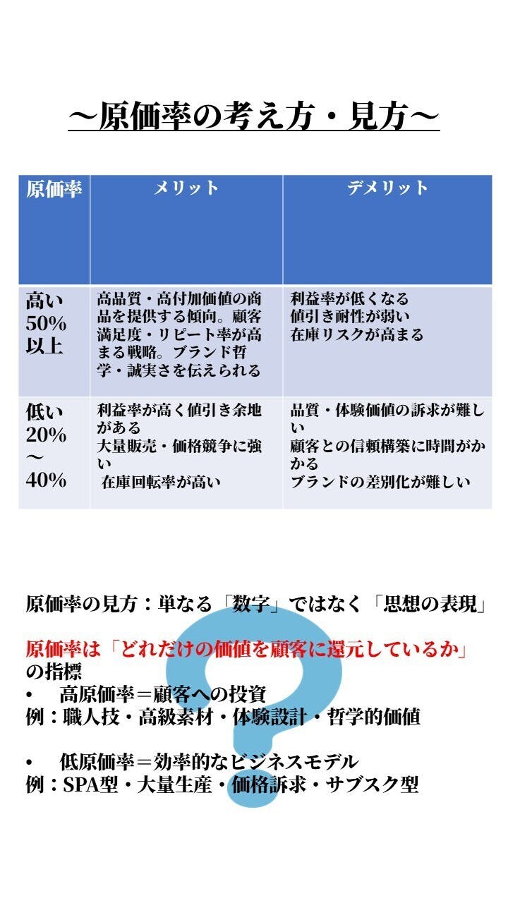 という部分を考えていくと原価率高い方がお客様には正直であるという指標の一つにはなりますかね。