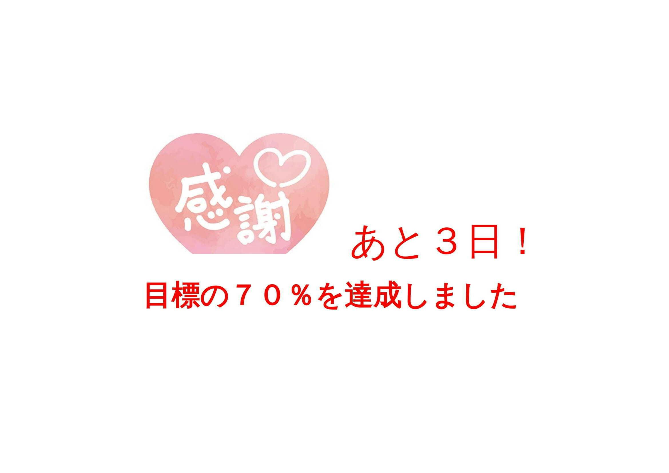皆さまのご協力で70%達成。心より感謝申し上げます。