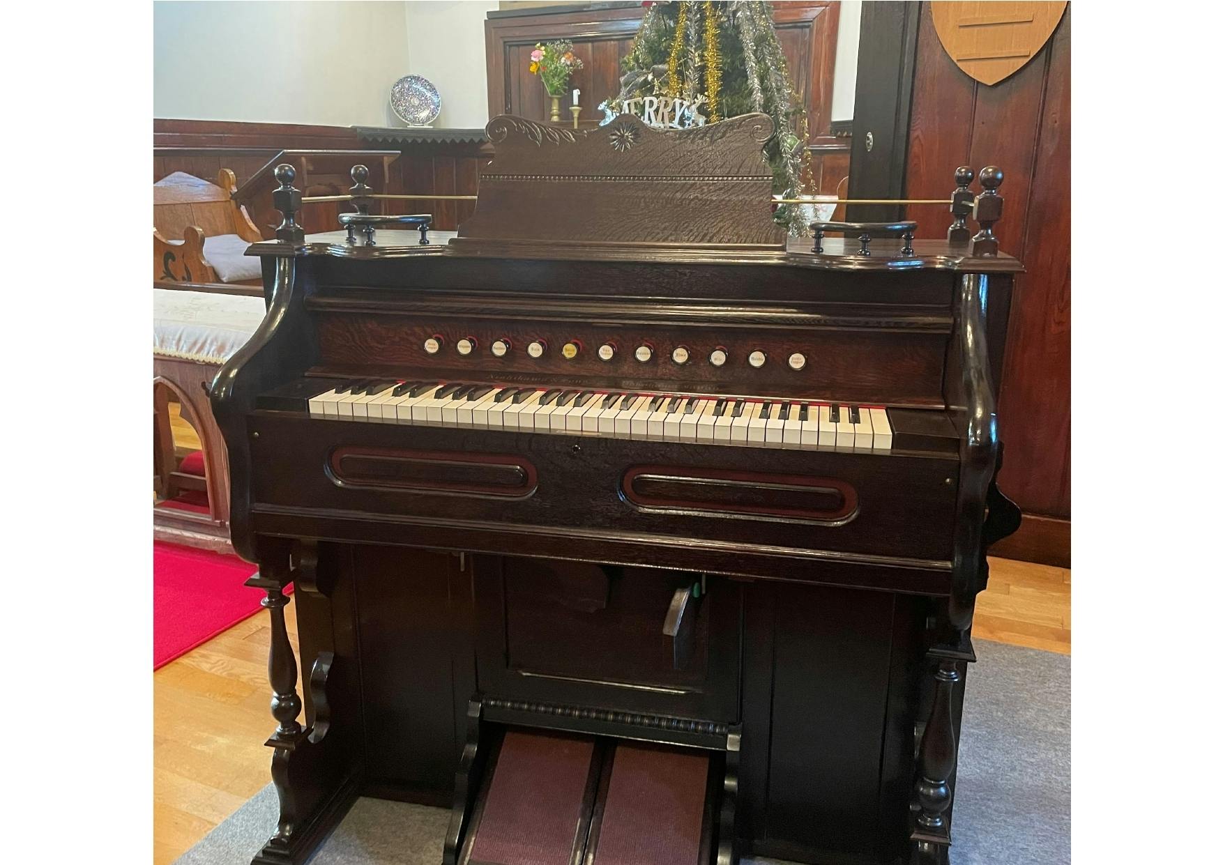 有珠聖公会バチラー夫妻記念聖堂の礼拝堂には、1909年製の西川&サン(横浜)製