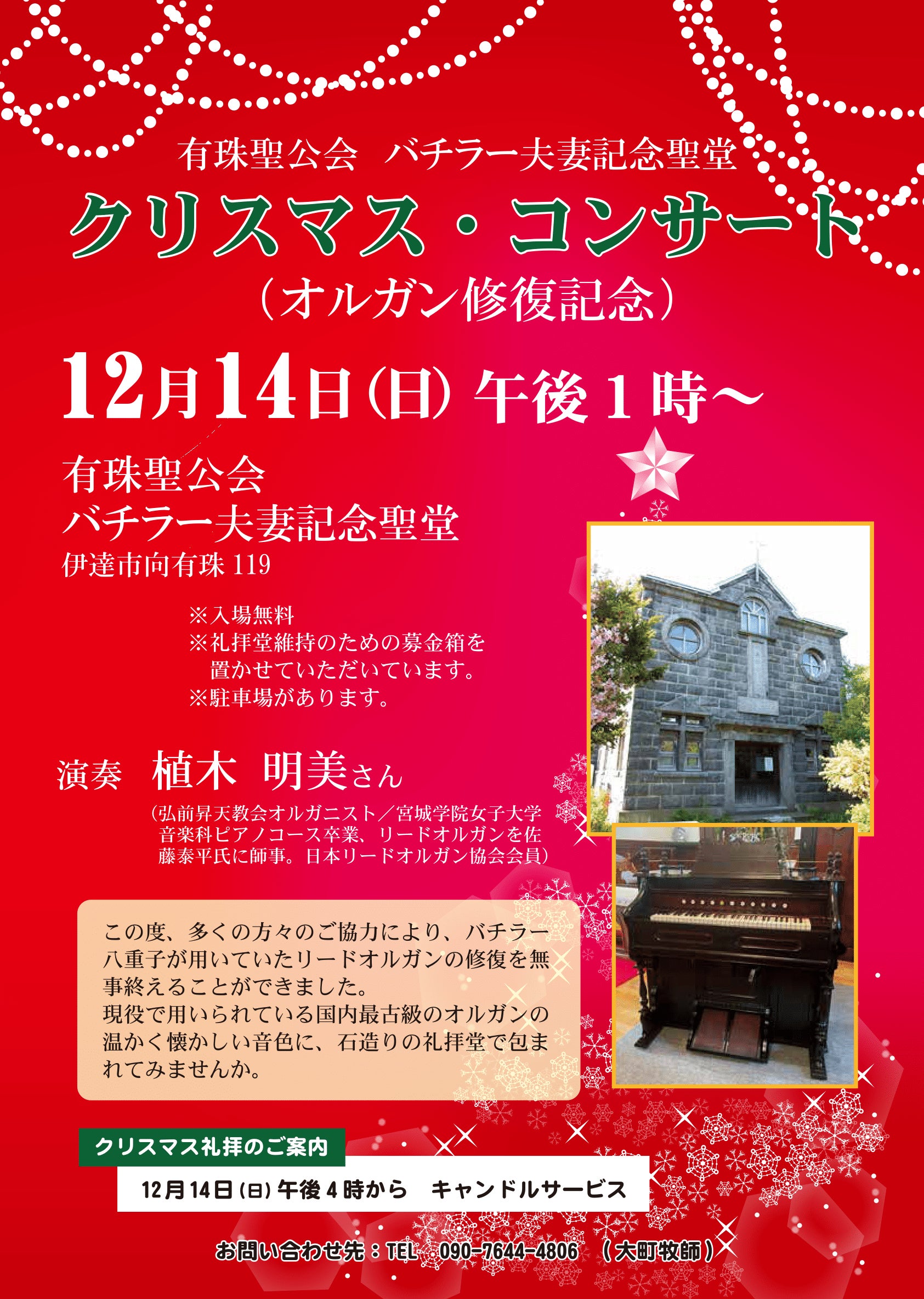 バチラー夫妻記念聖堂にて開催予定です。