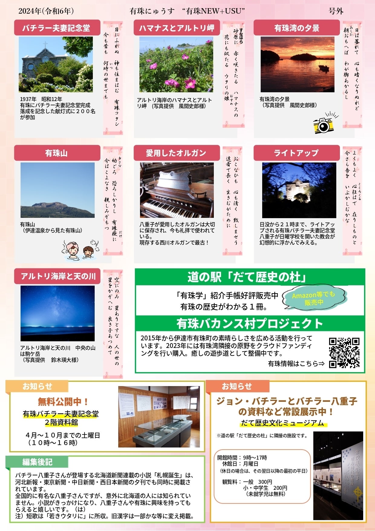 (有珠にゅうすは、2015年から有珠の素晴らしさを広める活動を行う有珠バカンス村プロジェクトが発行しています)