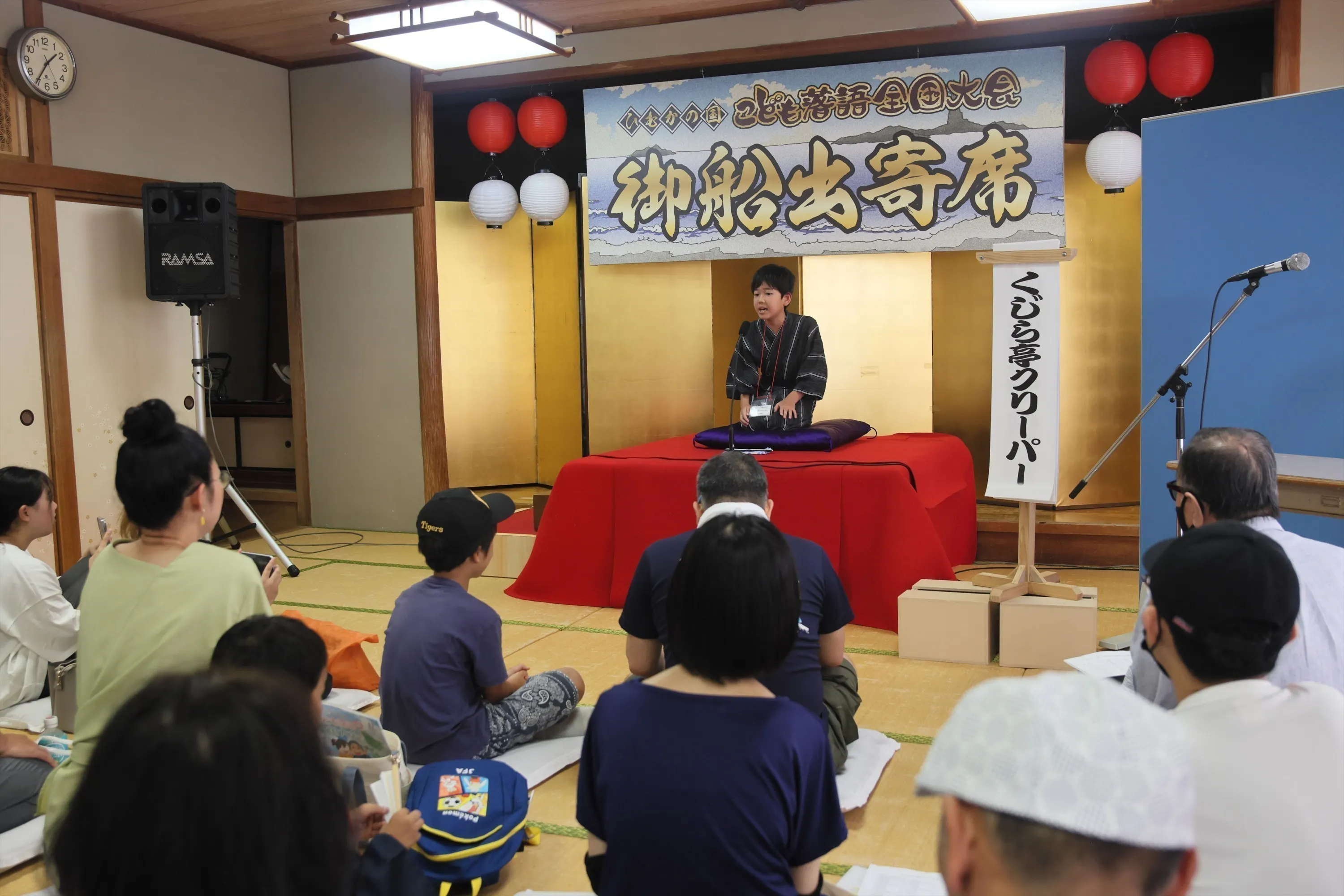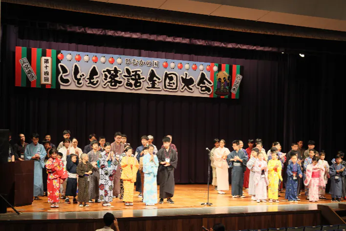 「ひむかの国こども落語全国大会」は、宮崎県が「お笑い発祥の地」とされる神話に基づき、全国で初めて(小・中・高校生の)子ども落語家が競い合う大会として日向市で始まりました。