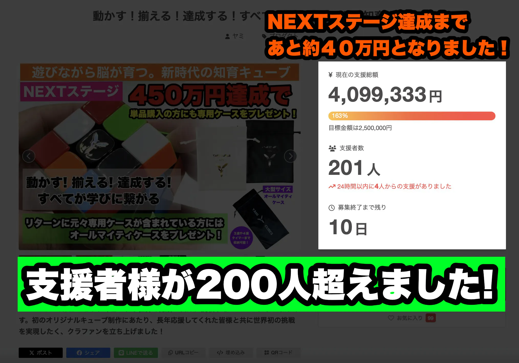 そしてご支援金額は約410万円 に到達!