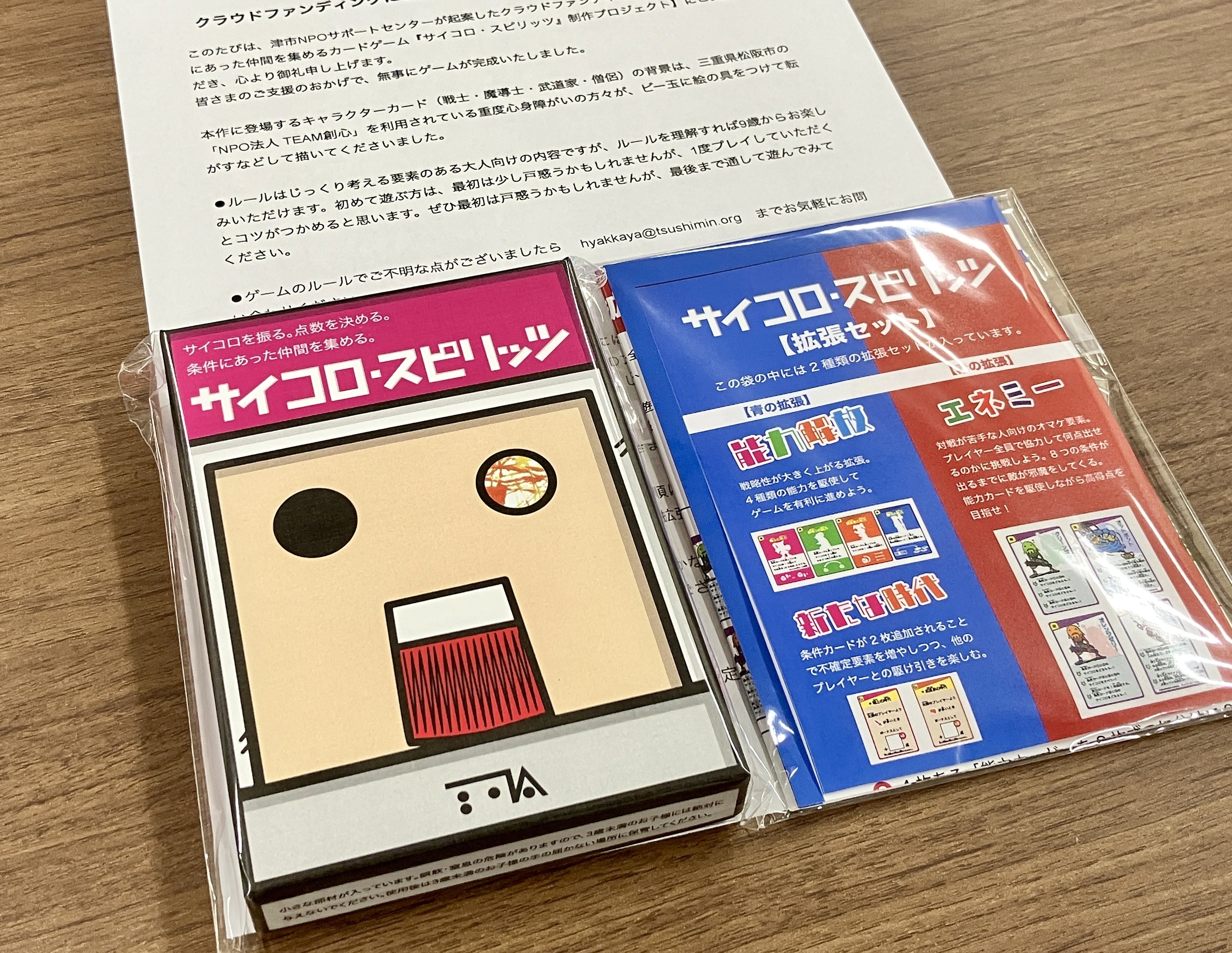 その中で、三重県松阪市で重症心身障害のある方をサポートしている「特定非営利活動法人 TEAM創心(そうしん)」の小山代表から「重症心身障害の方の表現活動の場を広げたいんです!」という相談があり、「じゃあボードゲームを作りたいので一緒に何かやりましょう」という会話から始まったのが、この『サイコロ・スピリッツ』です。