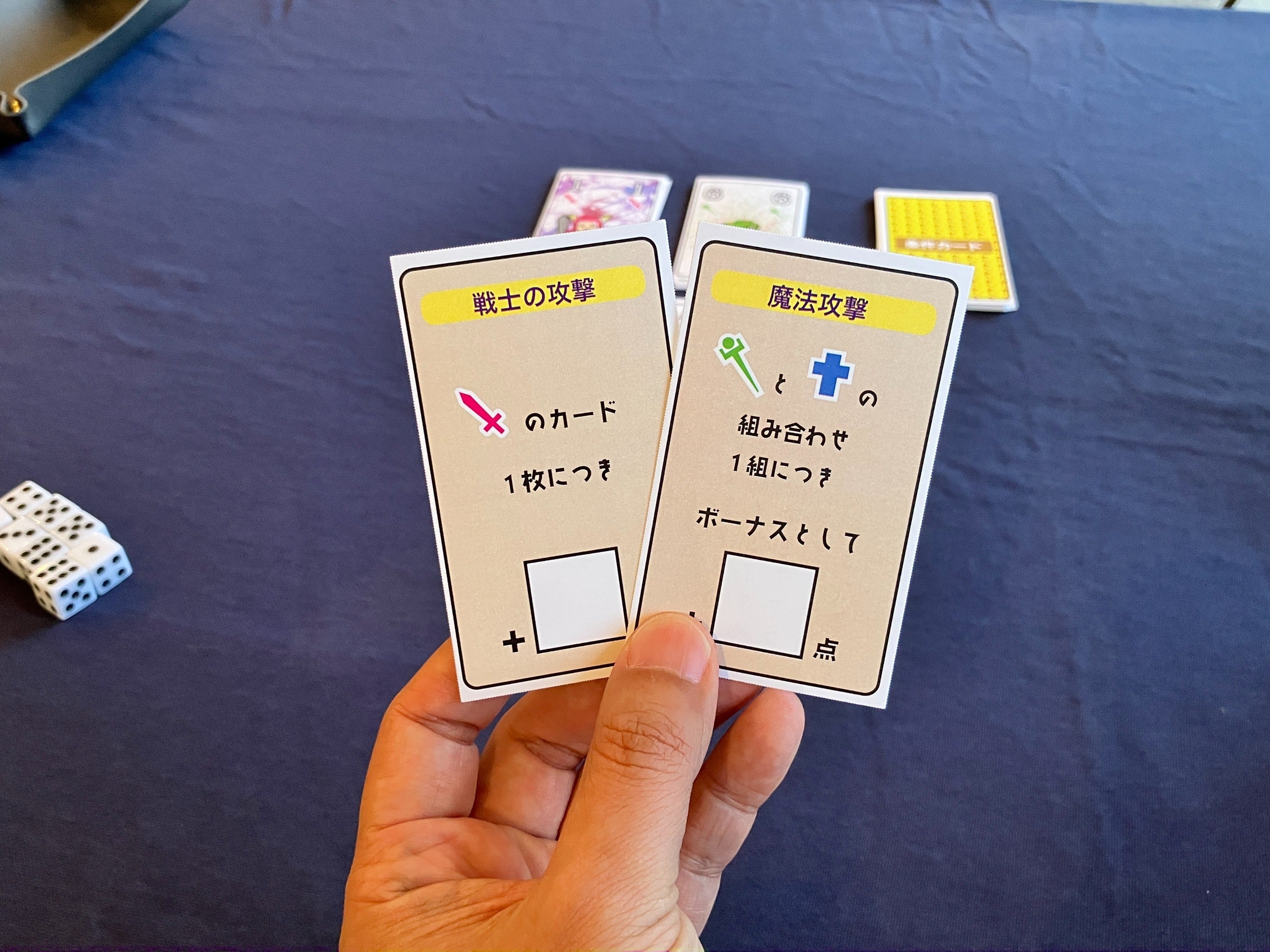 通常のルールにプラスして、協力ゲームモードのルールを追加していただくことで、「プレイヤー全員で一定の点数を獲得する」という遊び方ができます。