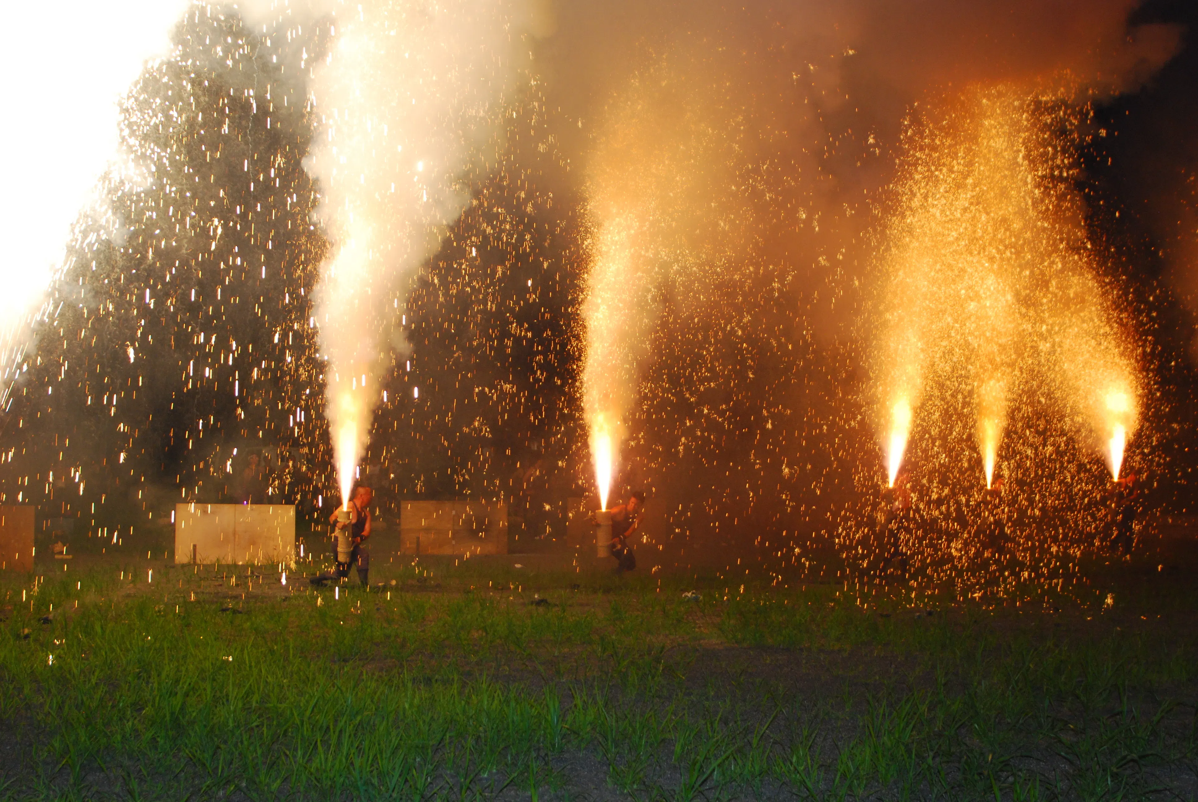 郷島煙火の手筒花火の準備は約2カ月前から始まります。手筒煙火で使う竹の調達(山で竹取りをします)から始まり、竹が虫に食われないようにする煮だし、乾燥後に藁や綱を竹に巻く作業、当日早朝から行われる火薬詰め、そして会場の安全管理など、その努力は並々ならぬものです。是非、郷島花火保存会の方々の努力の結晶を、そして郷島花火大会を守るというその気持ちを、美しく迫力ある手筒花火の打ち上げとともに感じていただければと思います。