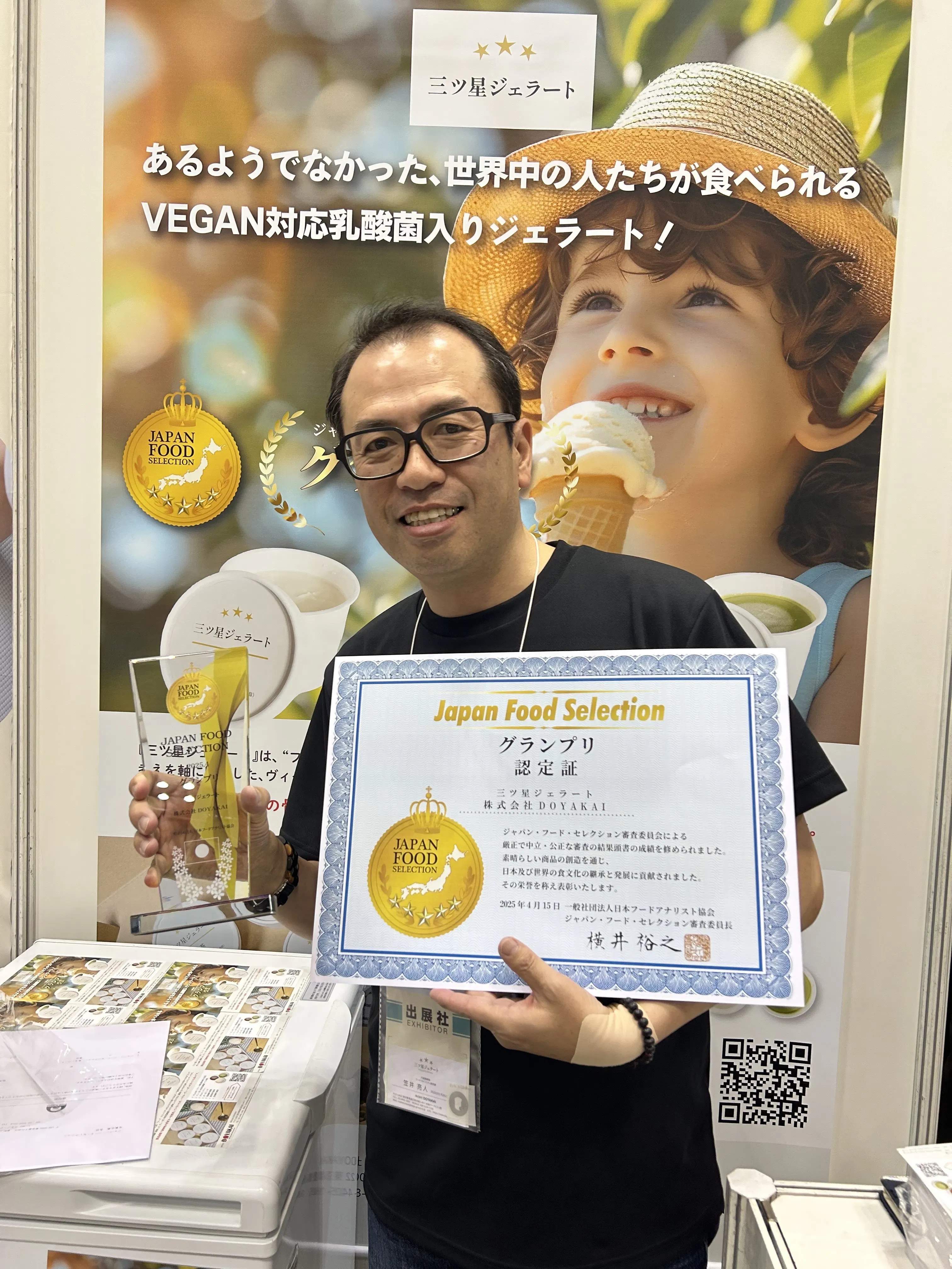 昨年11月からVEGAN対応乳酸菌入り「三ツ星ジェラート」バニラ、チョコレート、抹茶の3種類を販売開始しました。おかげさまで昨年末のお歳暮にはかなりの反響があり、ジャパン・フード・セレクションに推薦まで頂き、今年4月に第86回グランプリ受賞もできました。皆さんに喜んで頂ける、求めていた商品が作れたとプロジェクトに参加して頂いたみんなで喜びを分かち合え、新しい仲間がたくさん増えました。そして、新しい目標もできました。