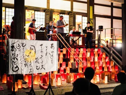 「てらテラス」は、お寺を舞台にした手づくりの灯りのイベントです。「てらテラス」という名前には、お寺や人々の心を“照らす”という意味と、憩いの場“テラス”のイメージが込められています。