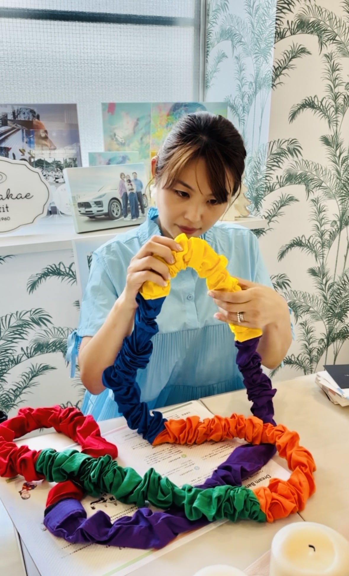 ドリームバンドは、赤・紫・黄色・青・オレンジ・緑のカラフルな6色で作られた、やわらかい布製の輪。