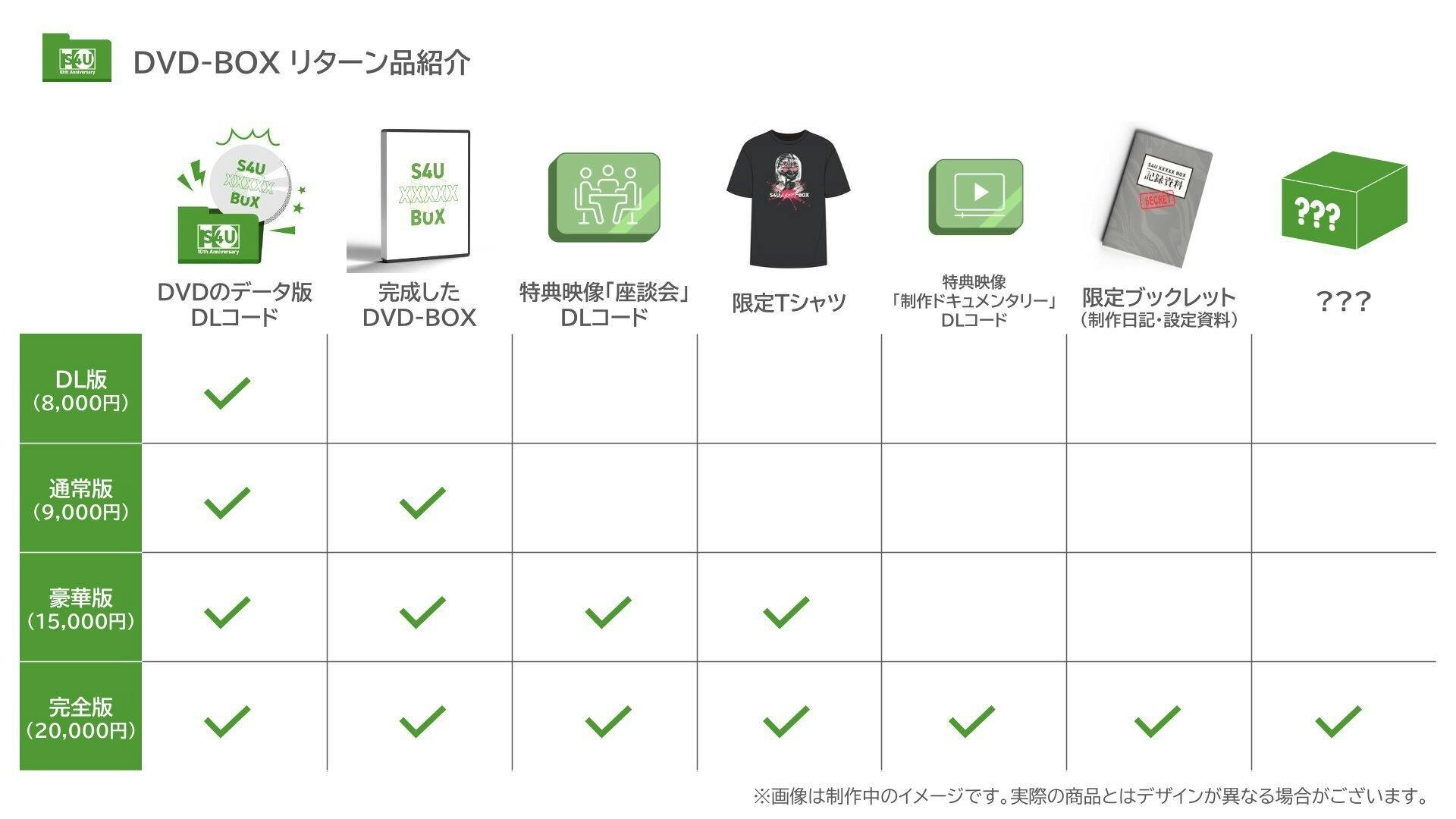 普段の動画では行えないような、高予算でやりたいことをやりたいように詰め込んだ新録の企画動画を6時間程度収めたDVD-BOXを出したいです! S4U史上最高にお金と情熱をぶち込みたいです!!