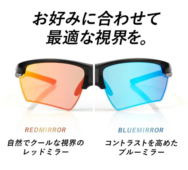 - 3, 自然な色調でクールな視界のレッドミラーと落ち着く色調でコントラストを高めたブルーミラーの2種類