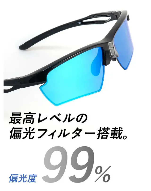 「A-FIT AF-801PMMC」のレンズには、偏光度99%の偏光フィルターが採用されています。光そのものを遮断する一般的なサングラスとは異なり、不愉快な光を取り除くことで、より心地よい視界を実現します。