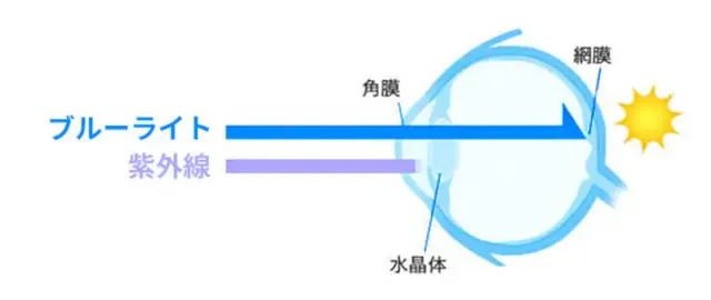 紫外線は目の角膜を透過できませんが、ブルーライトは角膜を透過し網膜まで到達してしまうため、目や自律神経への影響が懸念されています。