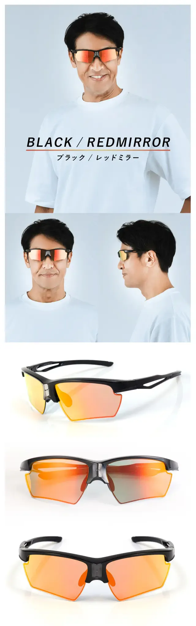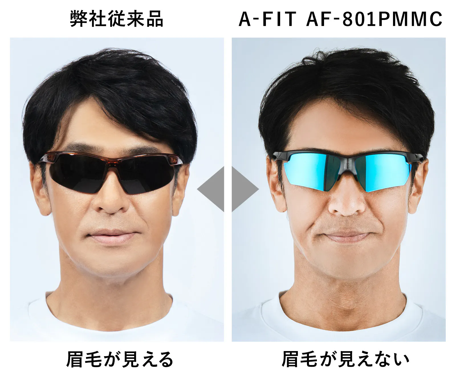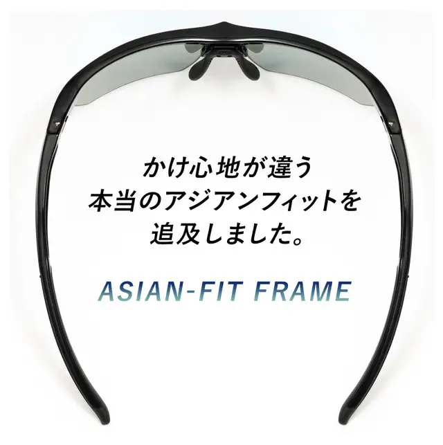 「サングラスをかけても似合わない!」そんなお悩みをよく耳にします。欧米人の顔はほりが深く、眉毛と目の間隔が狭いため、サングラスをかけると眉毛が隠れてバランスよく似合います。日本人はサングラスをかけると眉毛が見え、バランスも悪くなってしまいがちです。本商品は、極力眉毛が隠れるような設計になっており、かけてバランスよく格好良く見えます。