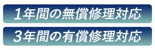 本商品は、1年間の製品保証付き商品となります。商品のお受取日から1年間、通常のご使用における故障、不具合が生じた場合のみ無償にて修理を承ります。ただし、ご返送時の送料はお客様にてご負担願います。修理品発送にかかる送料は弊社にて負担いたします。(※保証期間終了後も、2年間は有償にて修理・交換・パーツ対応を承ります。ご利用の際は、事前に弊社へのご連絡をお願いいたします)