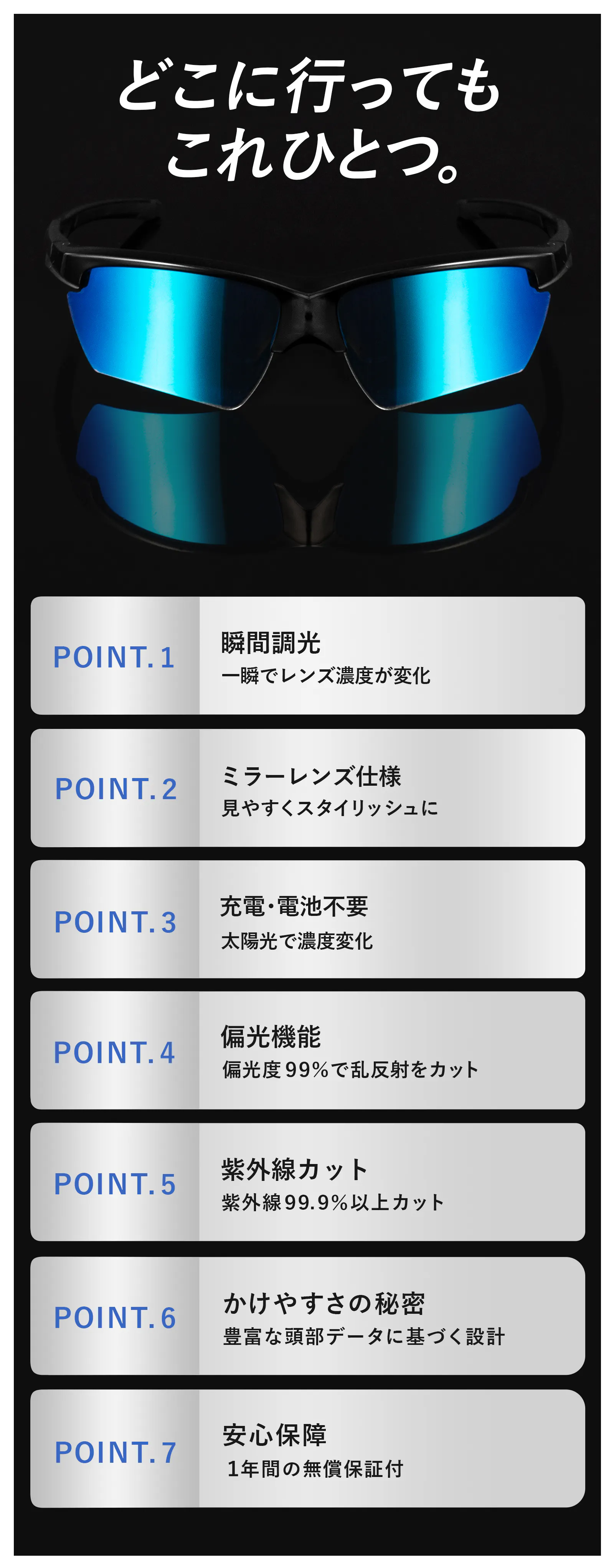 POINT.1「瞬間調光」一瞬でレンズ濃度が変化