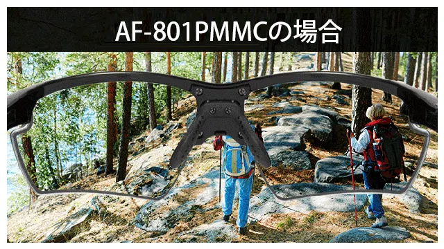 「A-FIT AF-801PMMC」は、明るい場所でも暗い場所でも光センサーが自動感知し、一瞬でレンズ濃度が変化し最適な視界を確保します。お車を運転中や自転車の乗車時など、急に暗いところに入ってもレンズ濃度が瞬時に変化します。(※本商品は、夜間運転には適応しておりません。またミラーレンズ仕様でベースカラーの光線透過率が22%(レッドミラーは30%)となるため、暗いトンネル内ではご注意ください。)