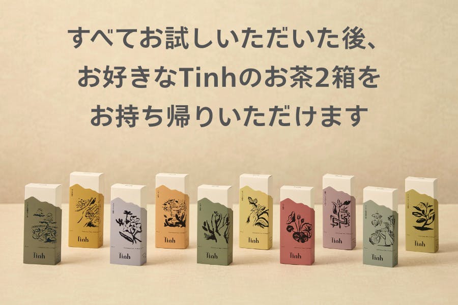 ペアリング会の後に、お好きなTinhのお茶2箱をお持ち帰りいただけます!