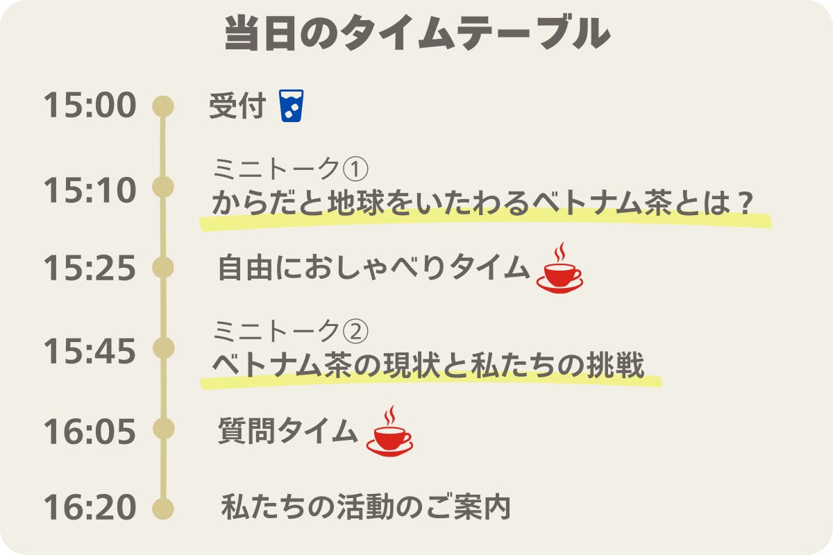 からだにも地球にもやさしいベトナム茶が楽しめる対面イベントのお知らせです。