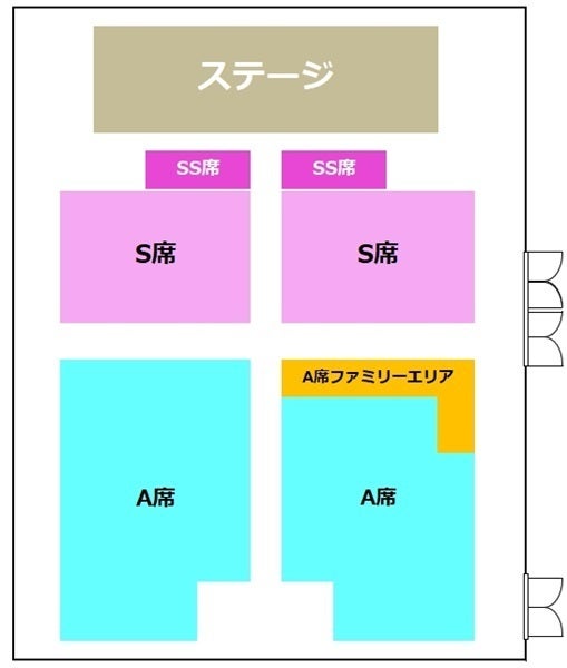 A席ファミリーエリア ¥10,000(税込)※お一人様各公演6枚まで 通路・扉の近くのお席になります。未就学児は膝上観覧可。別途お席が必要な場合は座席をご購入ください。