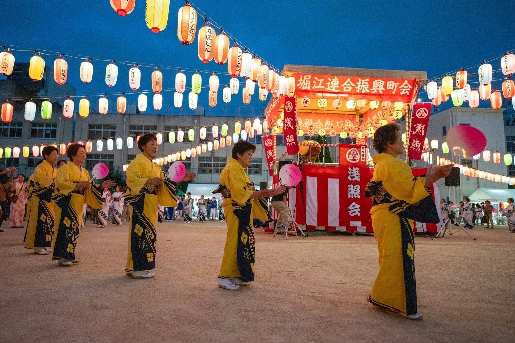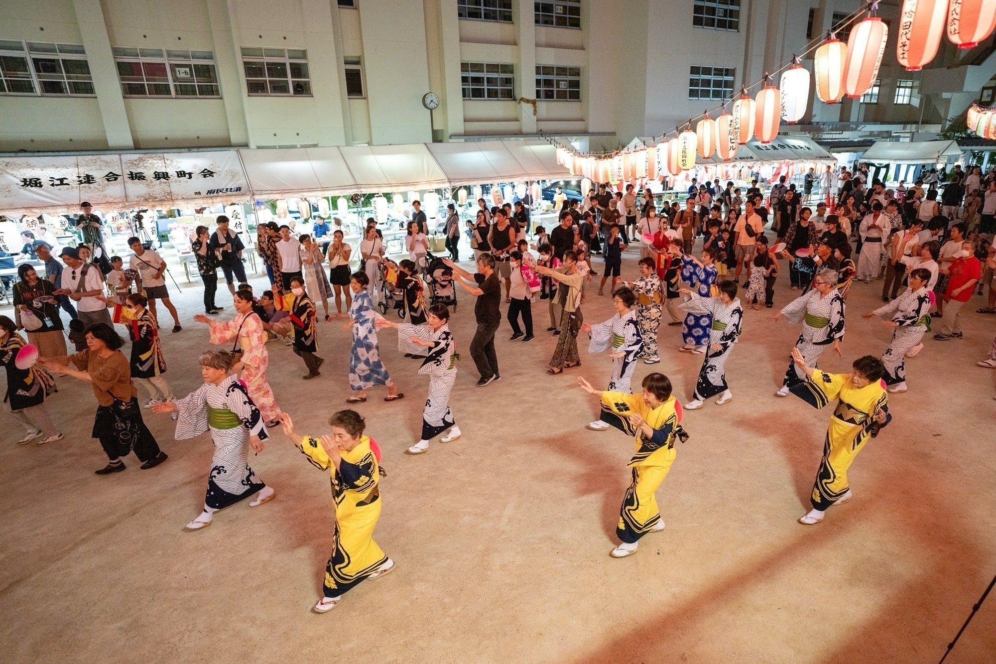 私たちは、大阪「堀江」地域で毎年開催される堀江連合納涼盆踊り大会を運営している地元の自治会です。地域の活性化と伝統文化の継承を目的に活動しており、地元住民とのつながりを大切にしています。